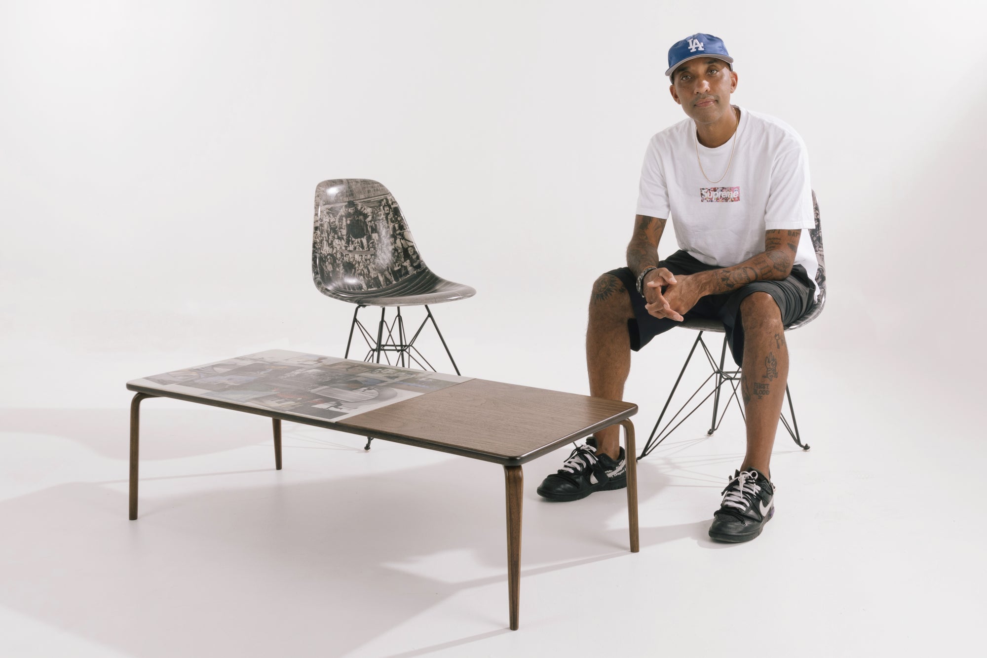 During September 2021 Modernica had the pleasure of working with acclaimed photographer Atiba Jefferson on a unique project crossing photography with functional furniture. Modernica and Atiba collaborated on a year-long project, merging some of his favorite skateboarding images and featured them on our timeless furniture, including a Case Study® Side Shell Fiberglass Chair, Fiberglass Coffee Table & Fiberglass Wall Pockets. For the first time, Modernica uses the Case Study® Wall Pocket as a Frame for his work. These functional wall pockets initially designed for office use have become a housing mechanism for his iconic images. Along with the 15 Wall Pockets, Atiba & Modernica have created a Fiberglass Coffee Table featuring all 15 images laid out to mimic a light-box vibe that showcases the photos all on one piece.