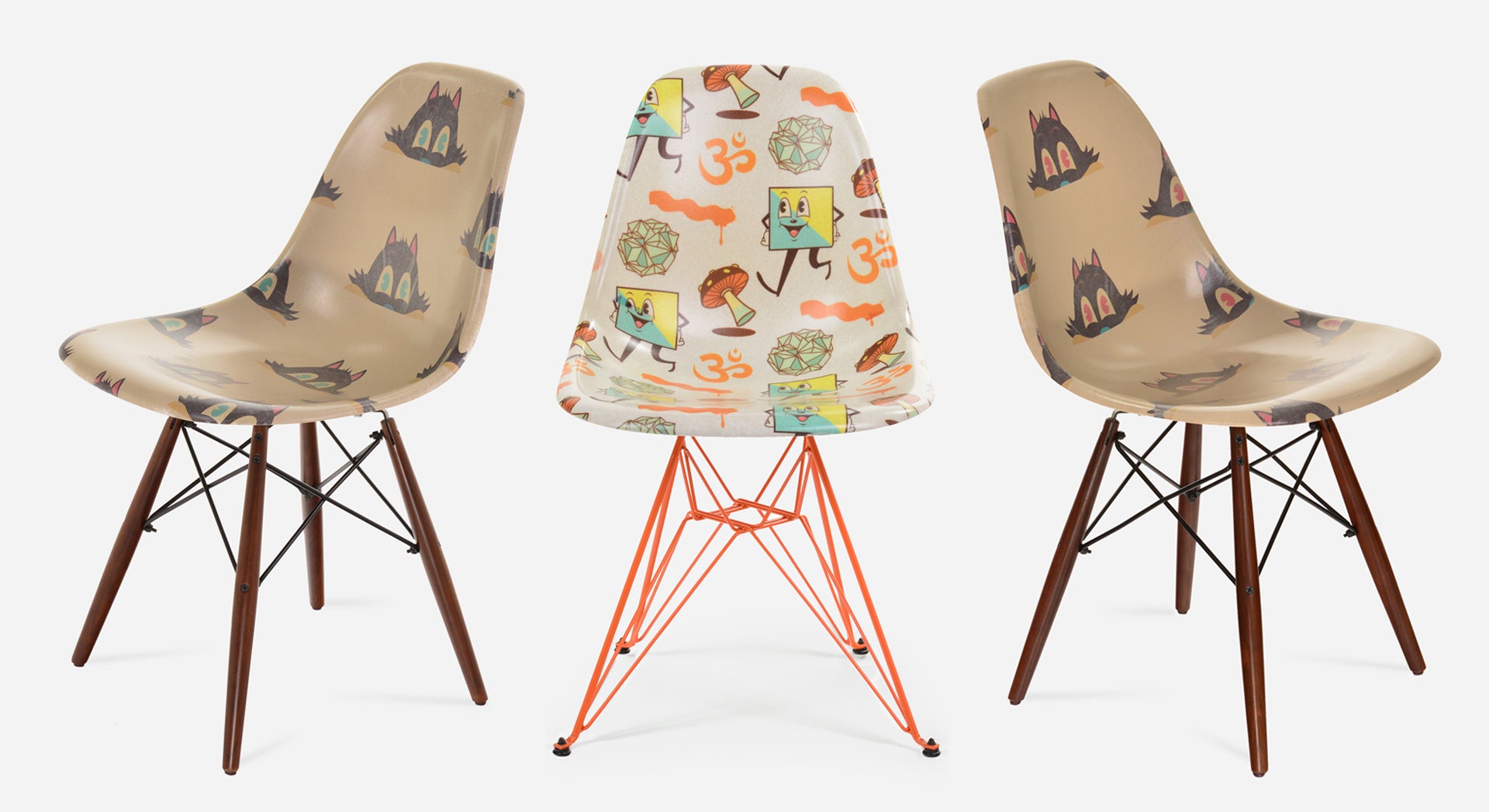 Artist duo DABSMYLA presents Before and Further, a 4,000 square foot installation takeover of a stand-alone 1930 built Spanish Revival workplace building, located on the Modernica factory property. DABSMYLA have fully transformed its interior and exterior with their newest paintings, sculptures, installations and exclusive furnishings from limited-edition fiberglass shell chairs and hand painted ceramics to custom-built lighting installations, all designed and created exclusively for their collaboration with Modernica utilizing the factory’s extensive technical capabilities.