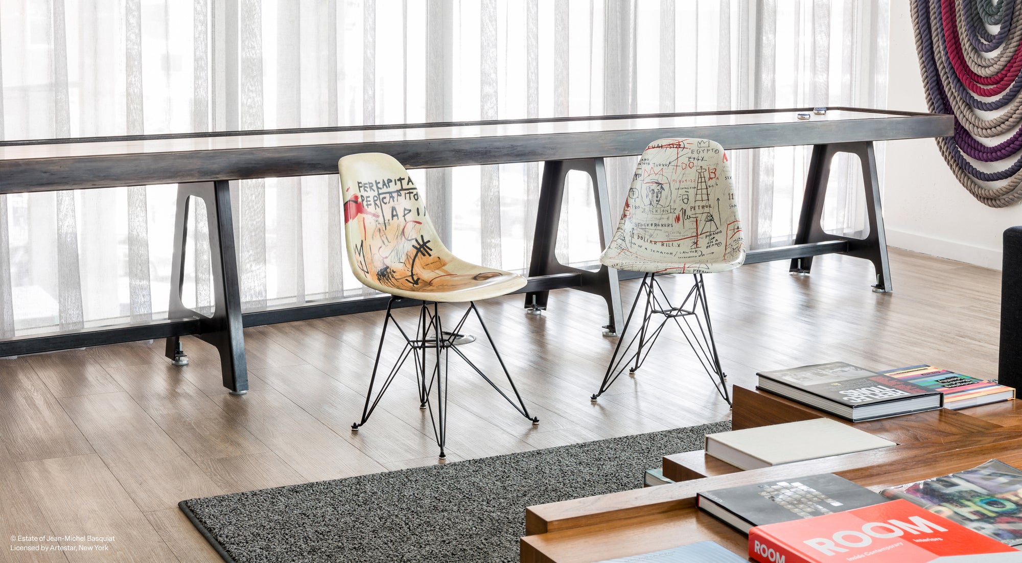 Introducing the Jean-Michel Basquiat Case Study® chair by Modernica. The Fiberglass Shell Chairs were originally designed in 1948 as an entry in The Museum of Modern Art’s International Design Competition, and are easily one of the most important and recognizable designs of the twentieth century. Each fiberglass shell is created by hand, one-by-one, in Modernica’s Los Angeles factory. This chair features designs from Jean-Michel Basquiat.