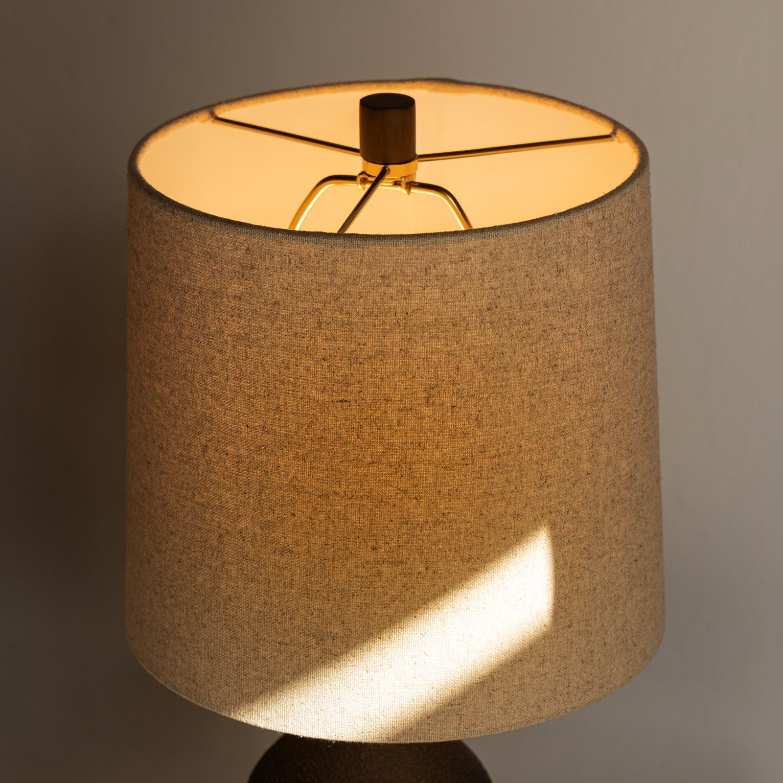 Thoughtful detailing underscores the lamp’s material integrity. Solid brass hardware, a natural linen shade, a cloth-wrapped cord, and a felt-covered base work together to create a refined yet grounded presence.