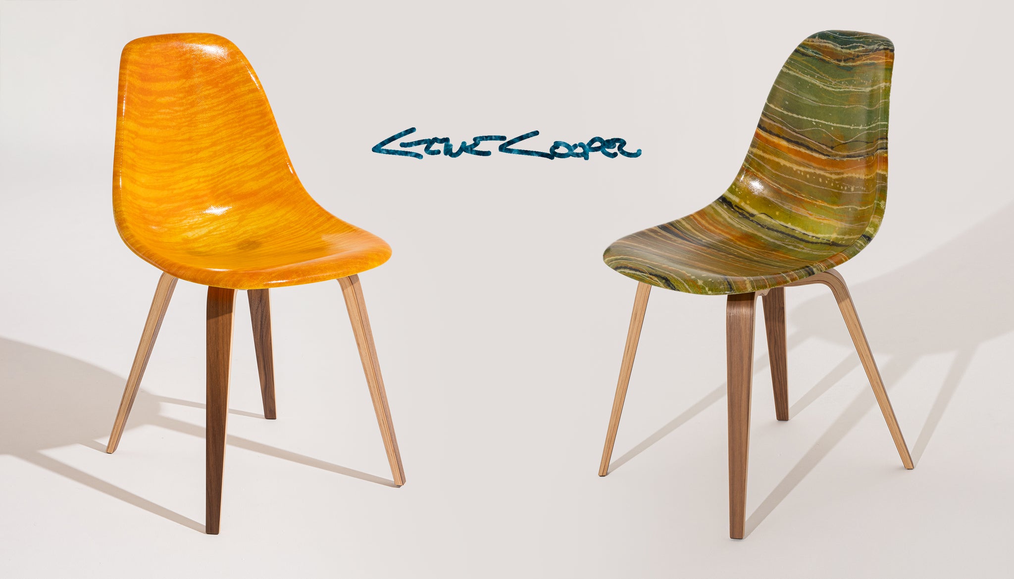Legendary surfboard maker and resin artist Gene Cooper has teamed up with Modernica to create a side shell chair collection.